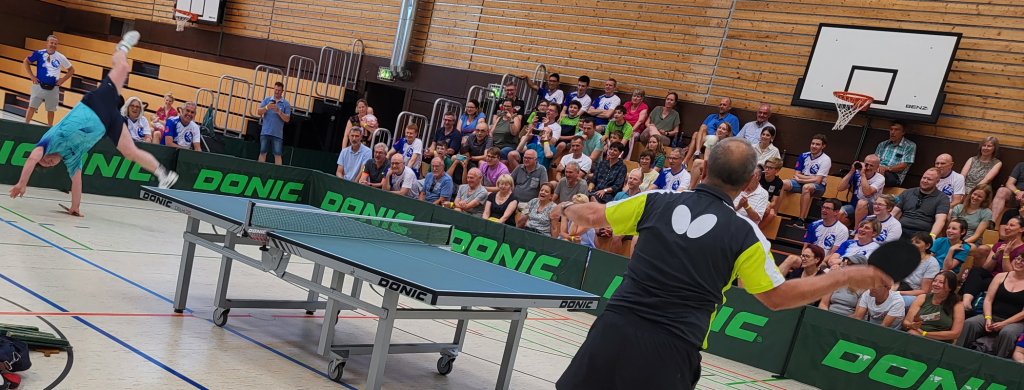 Daran knüpfen die Tschechen Orlowski und Pansky an. In den 1980ern dominierten sie das europäische Tischtennis, mittlerweile verzücken sie Sportbegeisterte bei ihren unterhaltsamen Tischtennis-Shows. Der TTC-Vorsitzende Michael Ade zeigt sich angetan von der Zusage und ist bereits „voller Vorfreude“ auf die Jubiläumsveranstaltung. Die beiden Prager werden dem Publikum nicht nur spektakuläre Ballwechsel bieten, sondern auch auf ungewöhnliche Schläger wie Bratpfannen zurückgreifen. Oder ein Rad weit hinter der Platte schlagen, ehe Pansky den kleinen Zelluloidball zu Orlowski zurückspielt. Die Show zeichnet sich so durch einen hohen Unterhaltungsfaktor aus. Das Duo wird den Zuschauern vor Augen führen, wie vielseitig der Sport sein kann – wenn man das nötige Talent und Fingerspitzengefühl besitzt wie der dreifache Europameister Orlowski, der 1985 mit Pansky Doppel-Vizeweltmeister wurde. Schon damals verstanden sich die beiden Asse an der Tischtennisplatte blind …